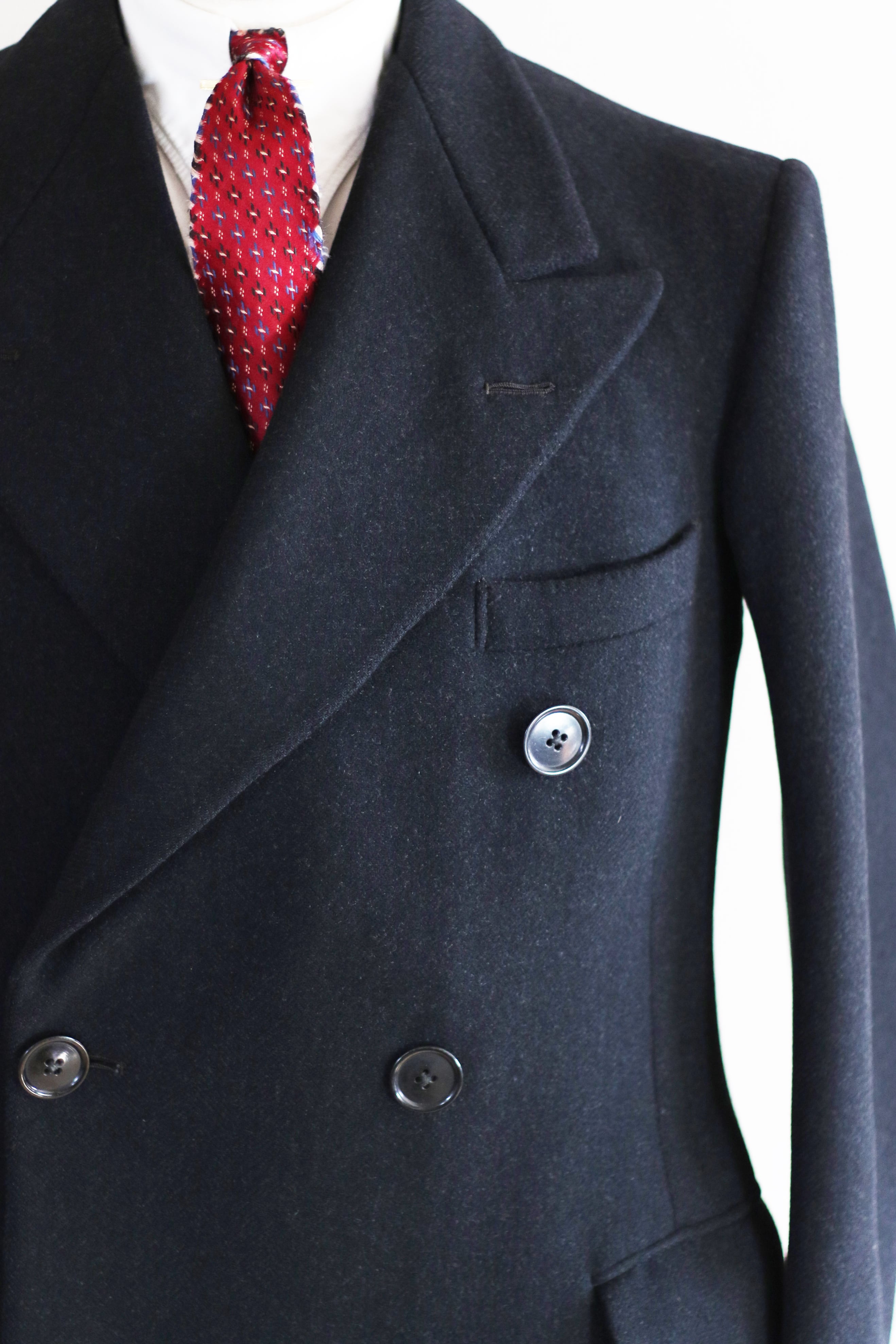 【SOLD】1930年代 ヴィンテージ ロング コート チャコール イギリス製 ダブル 極厚手 ウール